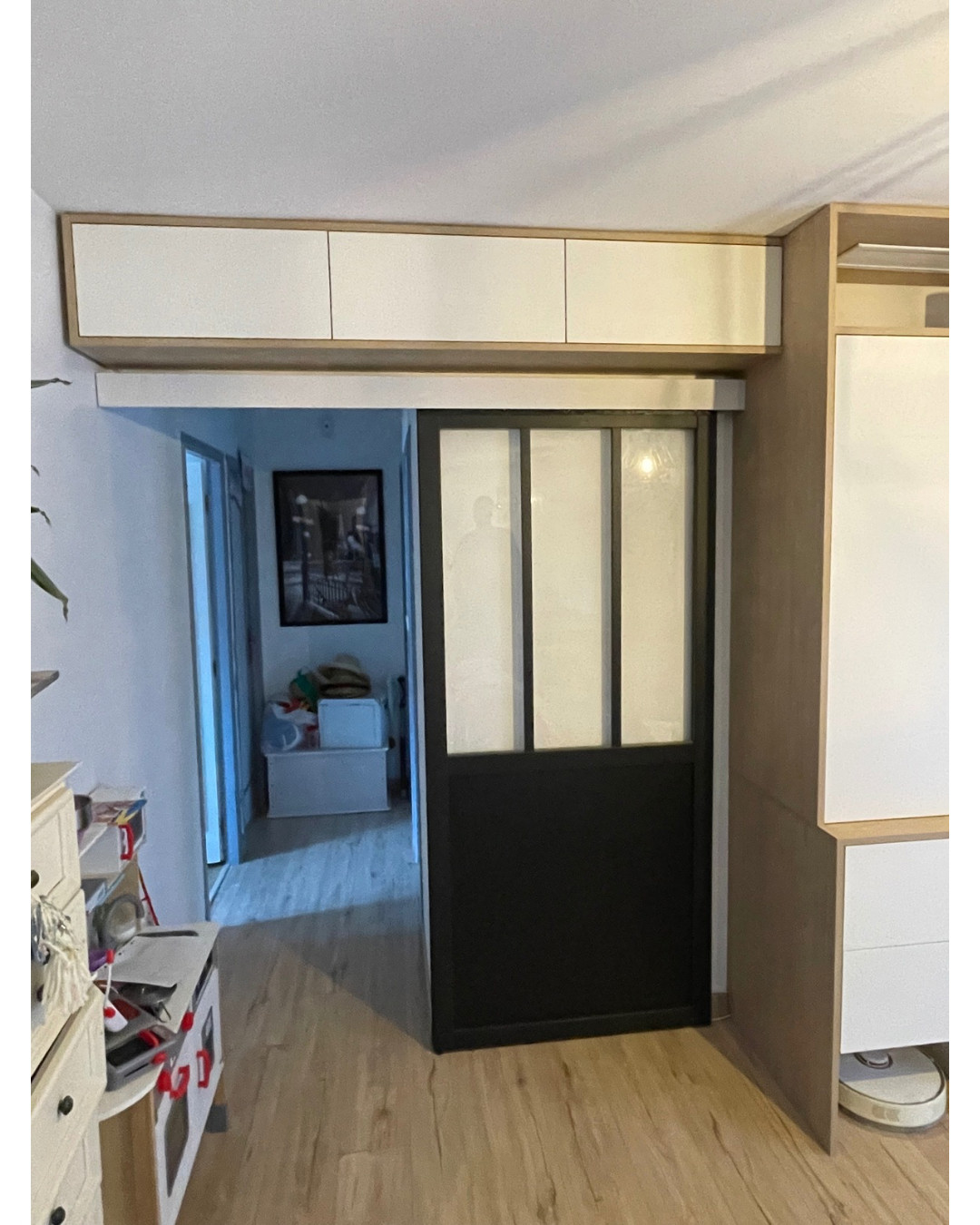 Chaque élément a été conçu et ajusté au millimètre, en respectant les contraintes du mur et les attentes du client, pour un résultat sur mesure à la fois fonctionnel et esthétique.